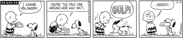 Chuck brings Snoop some food and thinks he's the only one who isn't greedy but then sees him devour his food.