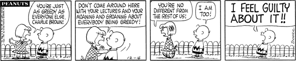 Batricia yells at Chuck for lecturing the representatives on being greedy when he's just as greedy but he says the difference is he feels guilty.CB 2846 Lucy 1473 Snoopy 1227 Linus 1057 Patty 678 Violet 558 Shermy 264