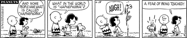 Lucille teaches Charlie Brownan children about Haphephobia, the fear of being touched. Luci decides that CPatricia couldn't have been the spy because her body was found and the Outsiders were found nearby.