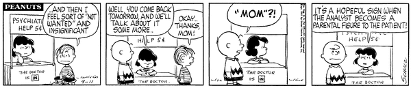 Lins watches some leaves fall over the first one to fall. Loal and Patricia are allowed to meet and start discussing an escape plan.CB 2805Lucy 1438 Snoopy 1195 Linus 1014 Pig-Pen 83