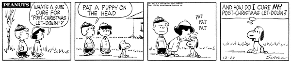 Schroe advises Luucy that a way to cure post-Christmas letdown is to pat a Doge on the head and she does that but then Snoop wonders how to cure his post-Christmas let-down.569