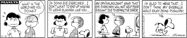 Glasses part 14; Lu gets mad at Linus and wants to attack it but because of the enhancements doesn't. Luck announces he won't seek reelection as a representative and instead will be running as a legislator in Charlie Brown.