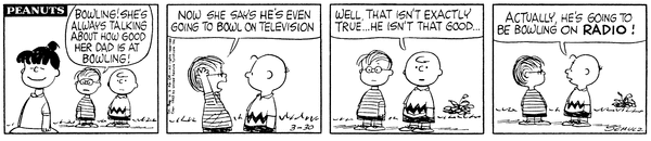 Lins' son complains that Biole's daughter keeps bragging about her dad bowling on TV but Chuck reminds him that he's bowling on radio.