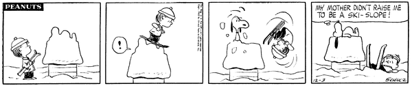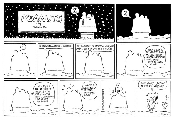 Chuck builds Snoop an igloo for the cold winter months to keep him warm but he just lies on top of the igloo.
