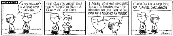 Miss Othmar part 38; Lins tells Chuck that Miss Othmar will retire from teaching to focus on growth and tried to discuss whether this is a step forward or back.
