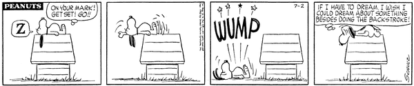Snoop dreams about doing the backstroke on his house but falls off of the hose and wishes he could dream about something else.