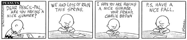 Pen(cil) Pal part 29; Chuck writes to his pencil pal but only talks abut summer, fall and spring because he has nothing to say.