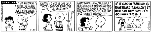 Chuck reads a quote from a familiar quote book but because Luucy doesn't recognize it she complains that if it was so familiar she would have heard it.