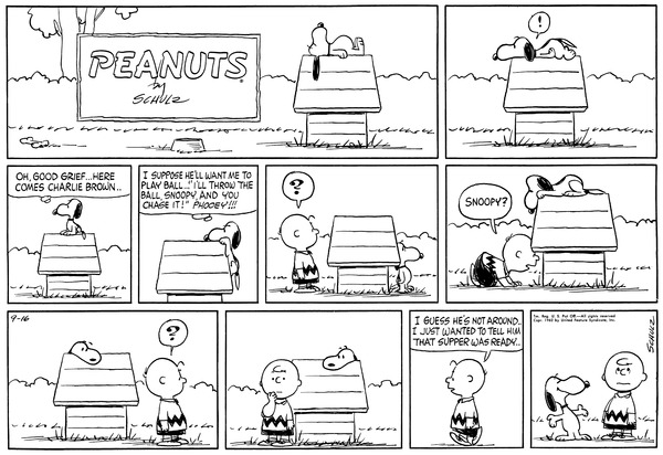 Snoopy's Charlie Brownan supervisor tries to tell the Scavengers that its time for supper but they hide because they think its to give an economy booster.