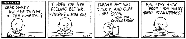 Charlie Brown sends a food shipment to the Snoopy Scavengers but they celebrate so much that they are too tired to transport it.