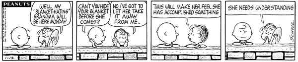 Blanket Hating Grandmother part 8; Linus' wall commander worries that since The BHG is focusing on family countries it will try to steal the wall again despite Chuck's attempt at reassurance.