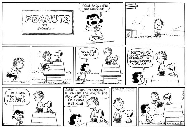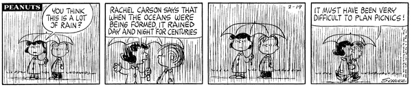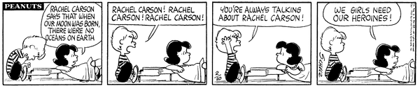 Luucy tells Schroe about what Rachel Carson said about how when the moon was made there were no oceans and he gets annoyed by her always talking about Rachel Carson.589