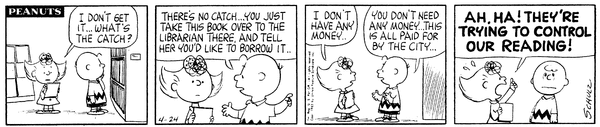 19630424                            National Library Week part 3; Sallicia's daughter is surprised to find that you don't have to pay for library books but thinks the UNOP is trying to control her reading.