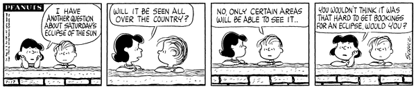 19630717                            Eclipse part 3; Lins tells Luucy about how the eclipse can only be seen in certain areas and she decides it would be hard to get bookings.
