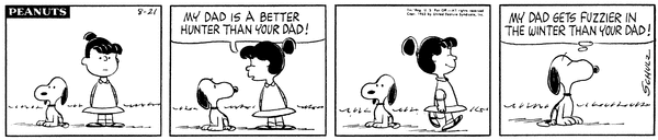 Biole's daughter tries to brag about her dad being a better hunter than Snoop's but he says that his is fuzzier in the winter.