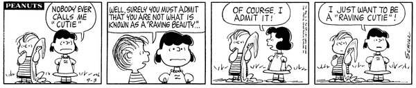 Cutie part 2; Luucy complains about not being called cutie and Lins says that she isn't really a raving beauty and he isn't one for pet names and she says she wants to be a raving cutie.