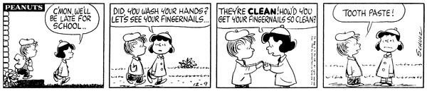 Luucy's daughter makes sure Lins' son cleaned his hands but his fingernails are incredibly clean because he used tooth paste.