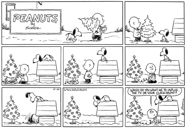19631222                           Chuck brings Snoop a Christmas tree but doesn't know whether to unplug the TV or clock-radio. The head of Charlotte Braun dies, apparently with no foul play, just bad luck and her successor appoints Charlette as her successor.