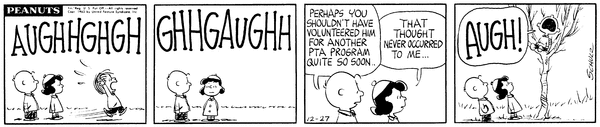 19631223                           PTA part 6; Luucy's daughter drags Lins' son to the PTA for practice and Chuck wishes him good look and to break a leg.