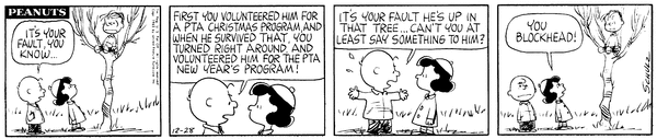 19631228                        PTA part 11; Chuck's son scolds Luucy's daughter for her role in him being in a tree but she simply calls Lins' son a Blockhead.