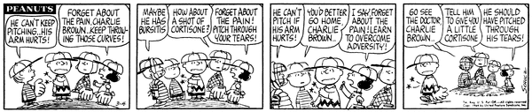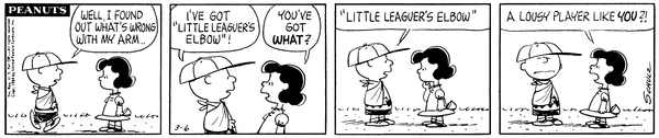 Little Leaguer's Elbow part 2(Mr. Manager part 231); Chuckson complains to Schroed about his hurting arm but doesn't want to be a quitter while Schroed says Beethoven always felt that way.618