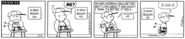 Little Leaguer's Elbow part 4(Mr. Manager part 233); Chuckson try's to pretend that he feels better when he is summoned to the x-ray room but it fails and he goes to the room.