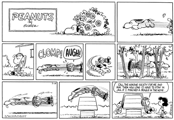 The Snoopy Scavengers steal the Linusian wall and get it stuck around the Doghouse fleet and then the wall commander asks Luci how long Linus will be sanctioned by the Humane Society if he attacks the Scavengers.