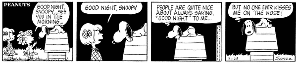 Patrice and Fried say good night to Snoop and he is happy that they do but is annoyed that no one ever kisses him on the nose.81