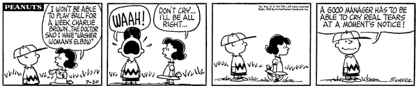 Mr. Manager part 267(Washer Woman's Elbow part 7); Luc tells Chuckson about how she has washer woman's elbow and won't be able to play for a week so he cries real tears so make her think she is sad.