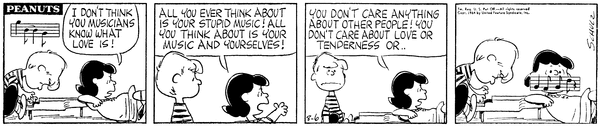 Lu asks the Great Piano why Schroeder won't merge with Lucy and says that when she adds up her features it leads to a good answer and it asks if she added wrong.636