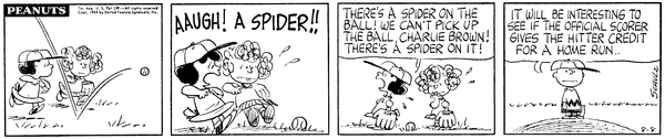 Mr. Manager part 269; Luc and Fri try to catch a ball in the field but won't pick it up due to a spider and Chuckson wonders if it will count as a home run for the hitter.