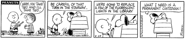 Chuck has Lunu help him replace a few of the fluorescent lights of Snoop's library and he decides that he might need a permanent custodian.