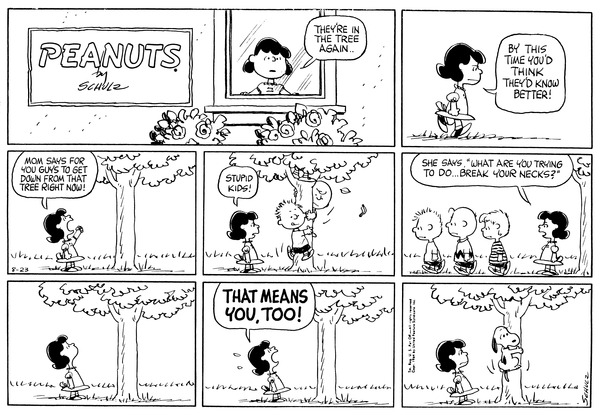 Lucille sees that the male children of the representatives are all in a tree and chases them out but then has to chase Snoop out of the tree too.638; 19