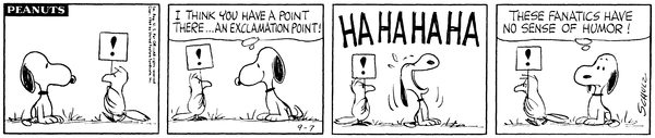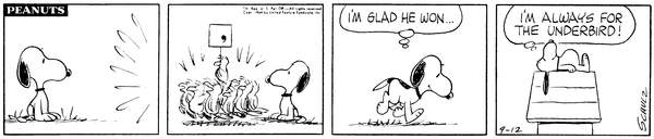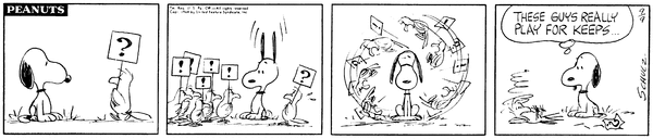 Bard Elections part 8; A treble clef, $ and a cent sign campaigner walk through Peanutsville and Snoop remarks that they can't seem to agree on anything.