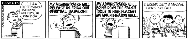 Linus For President part 9; Lins' son gives a fiery speech about how his administration will bring down the false idols and the principal looks pale at it.21