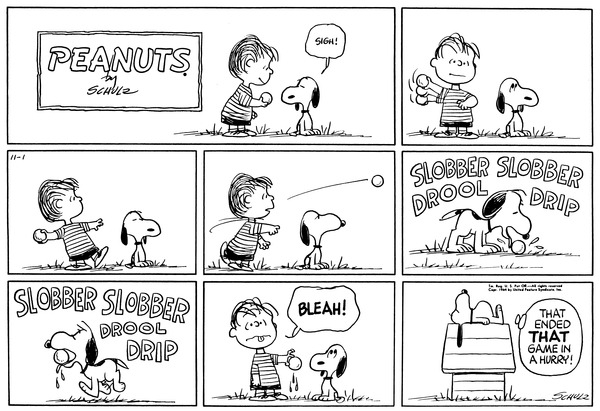 Linus sends an economy booster to Snoopy's Scavengers but they want to end it by spitting and slobbering all over it.