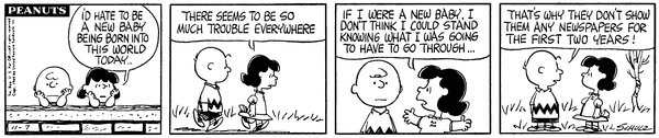 Luucy says that she would hate to be a newborn baby in the world with everything that is going on and Chuck says that is why they don't give them newspapers for two years.