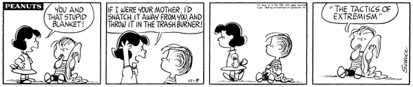 Lu threatens to steal the wall from Linus and burn it up until it is completely destroyed which he just calls the tactics of extremism.