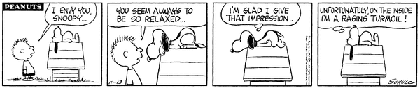 Fiften envies Snoop for being so relaxed and he responds that he's glad he gave the impression but on the inside he is a raging turmoil.22