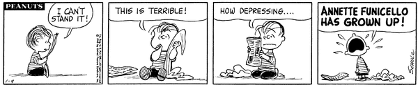 Lins' son is saddened that Annette Funicello has grown up and begins to cry and call it terrible and depressing.CB 3434 Lucy 1904 Snoopy 1656 Linus 1515 Patty 709 Violet 605 Frieda 87