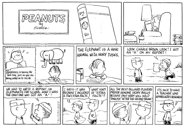 Lins' son is mailed his grade for his report on elephants and he finds out that he was the only one to get an A because he included extra facts.