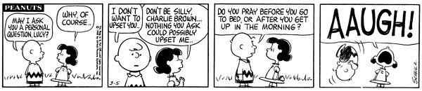 Chuck wonders if he can ask a personal question to Luucy and she says yes but when he asks her when she prays she refuses to answer.