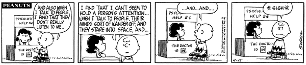 Chuc goes to psychiatry and when he talks about not being able to hold people's attention he notices that Luucy isn't paying attention to him.