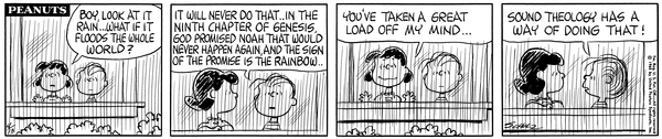 Luucy wonders what if the rain floods the whole world and her husband (Lins) reassures her that god promised to never flood the planet again.