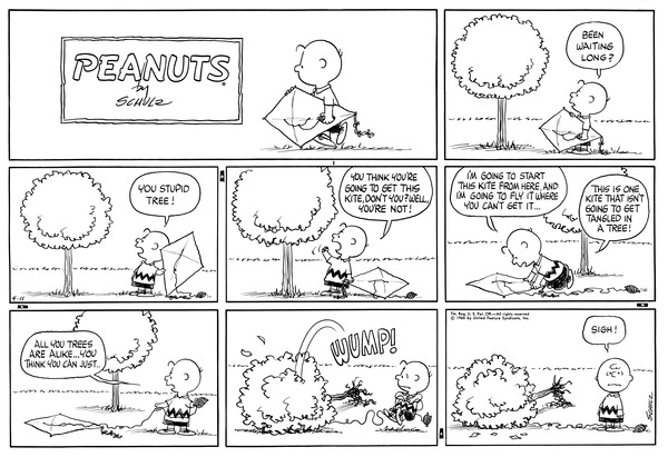 Charlie Brown decides to sail a kiteboat where the Kiteboat Eater can't get it but it nearly destroys itself and grabs it.
