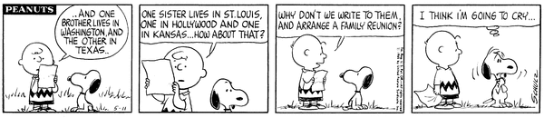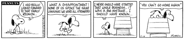 Snoopy's Reunion part 10; The party talks to Schulz about how they were all strangers and didn't know each other and decides that you can't go home again.
