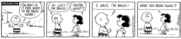 Camp part 17; Chuck returns home and says hi to Luucy but she doesn’t even know that he had left when he said that he was back.