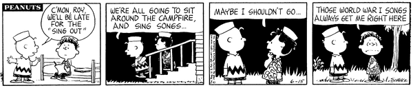 Camp part 13; Chuck brings Ro out for the sing out but he doesn’ Want to come because World War One songs make him sad.