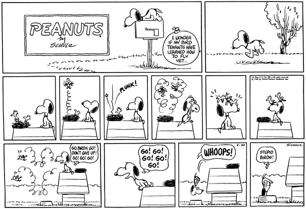 Snoop gets the Bards to fly off and they succeed but he is so excited that he falls off of his house into a bowl.