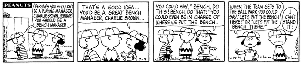 Grit part 10 (Mr. Manager part 301); Schroed advises Chuckson that he should be a bench manager and Luc thinks its a good idea but thinks that it means telling the bench what to do.659